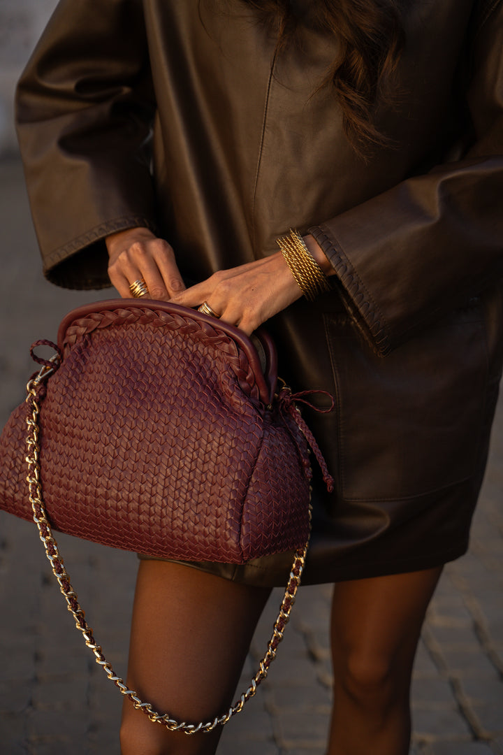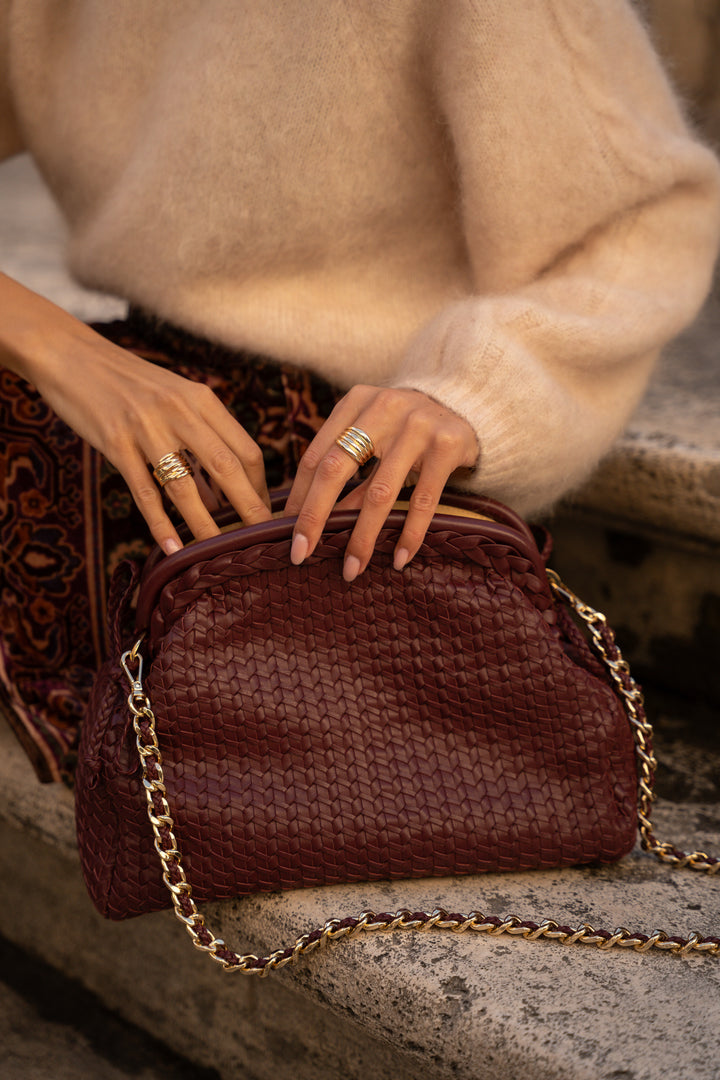 Reflecting the artisanal expertise of Maison Stella & Suzie, it is crafted from hand-braided leather in Portugal. It captivates with its sophisticated details and timeless design.