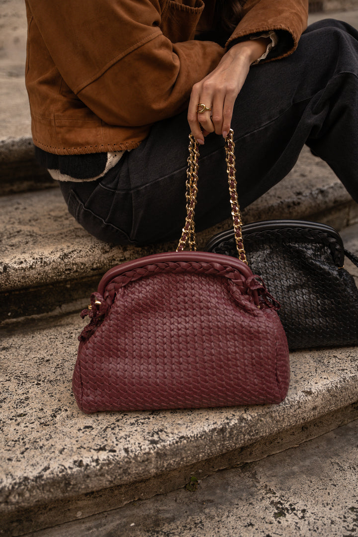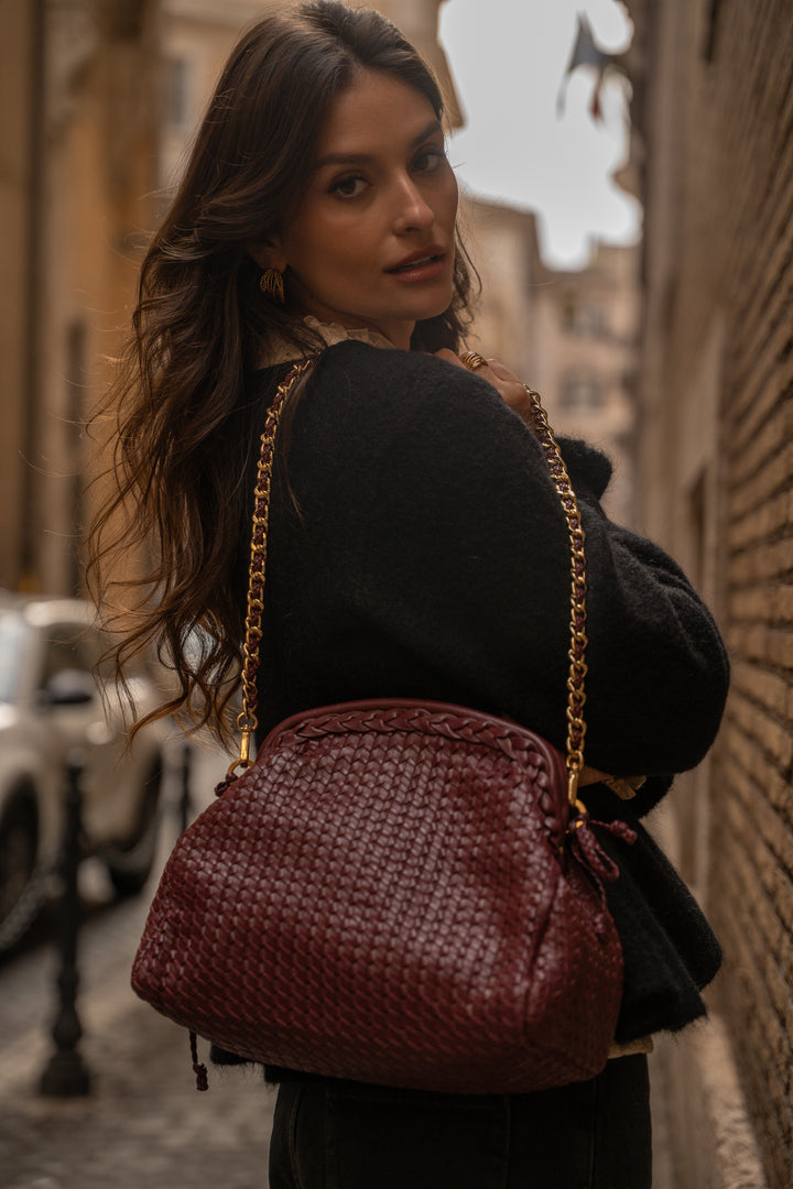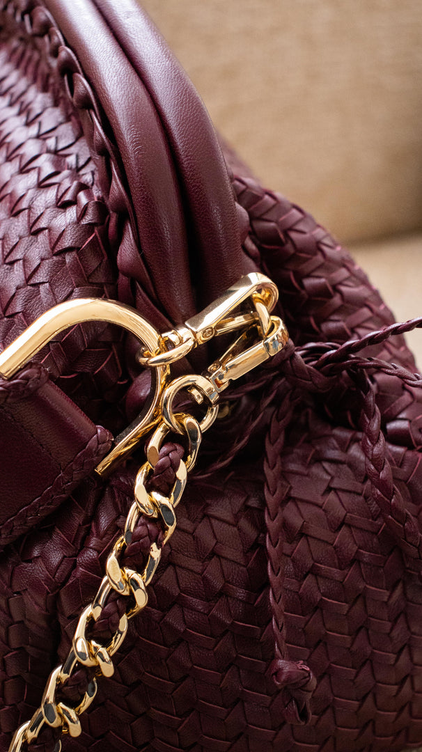 Cellineta, our iconic Maison bag, is back, more elegant than ever, in an intensely glamorous burgundy.