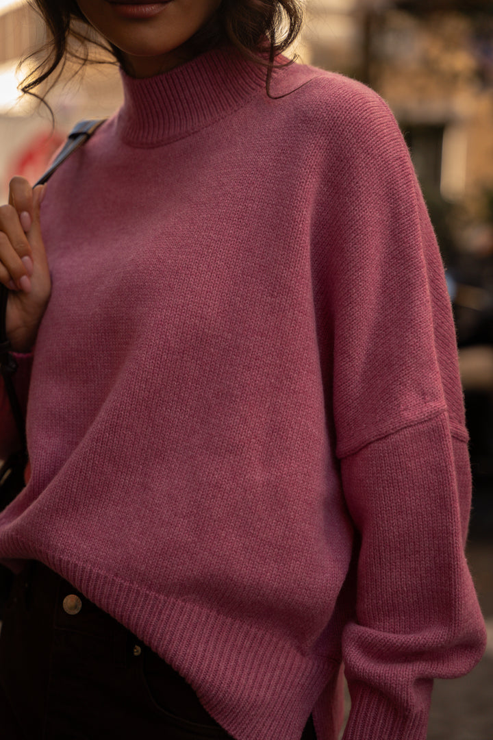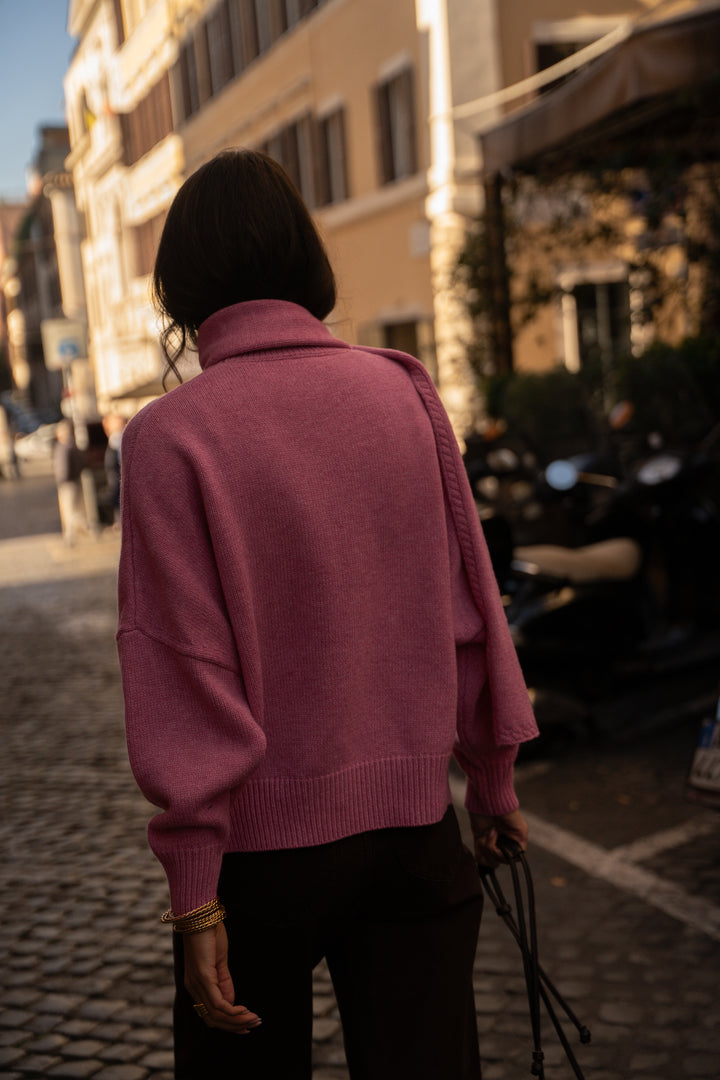 The Adaël sweater stands out with its decidedly urban look and its soft orchid color, making it a key piece in our wardrobe.