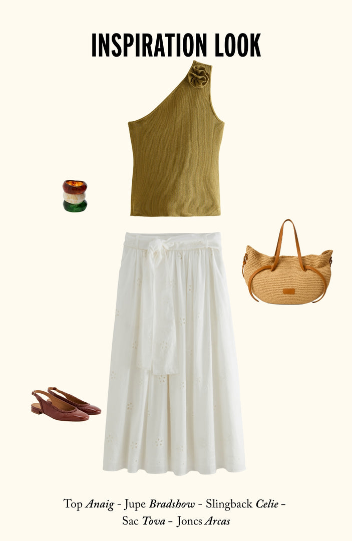 You loved it, the Bradshow skirt is back, more poetic than ever, in an embroidered ecru, which makes it the essential piece of our summer wardrobe.