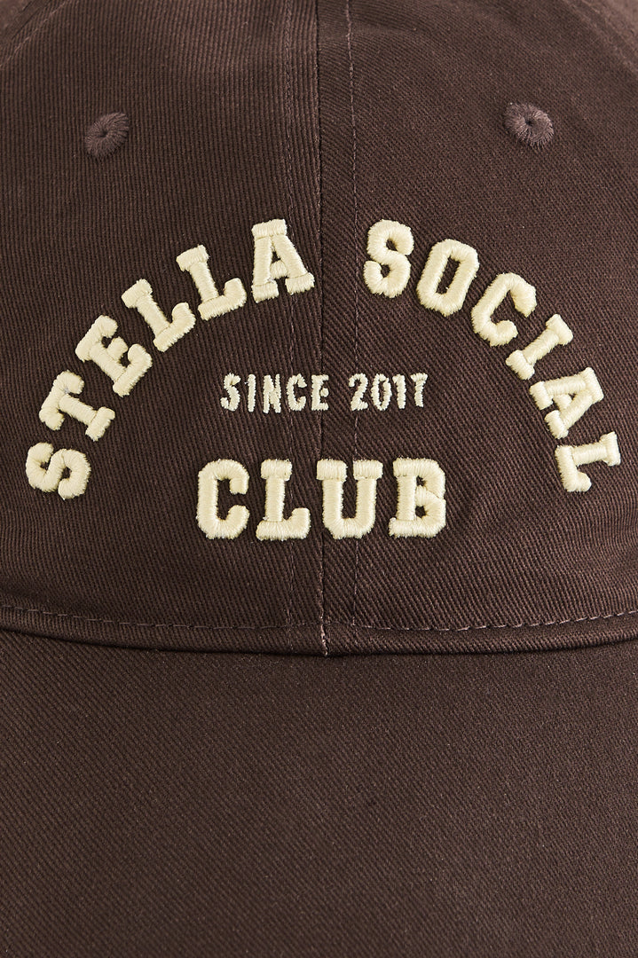 The brown Laurene cap, embroidered in butter yellow with our iconic "Stella Social Club", is the ideal piece for sportswear looks.