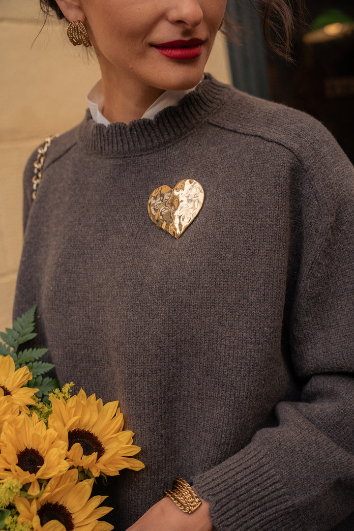 This fancy heart-shaped brooch is the ideal accessory to add a touch of elegance to your looks. The discreet engraving of the logo on the back of the brooch signifies its quality and unique character. On a coat, scarf or blouse, this brooch will bring a touch of softness to your looks.