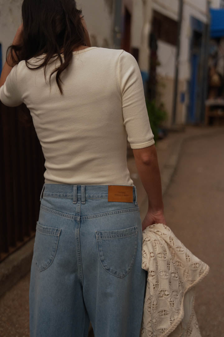 We love its subtle embroidered details at the bottom of the sleeves and around the neckline, which add a touch of discreet femininity.