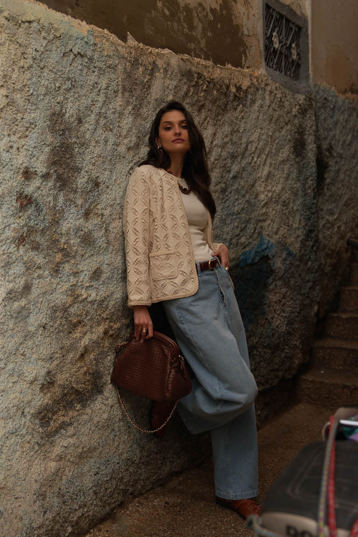 Renita macrame rosette jacket in ecru