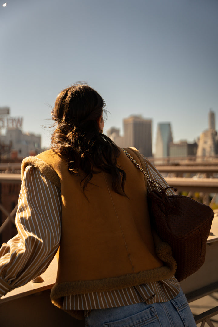 Iker camel sleeveless sheepskin coat