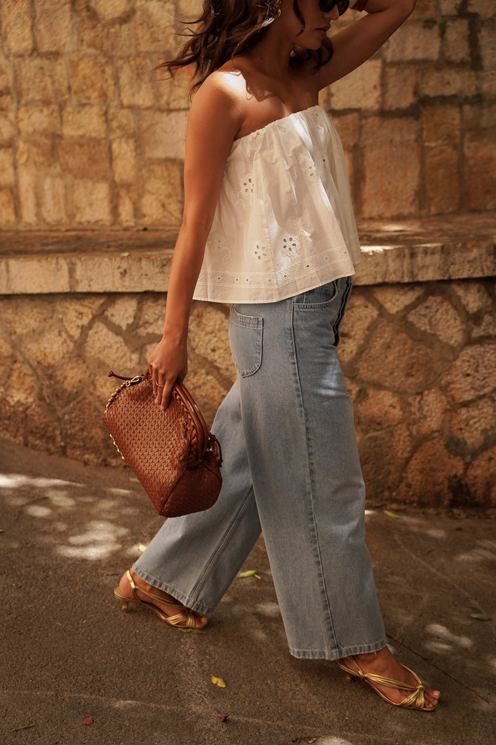 Pair with high-waisted jeans for a more casual look, or with the Bradshow skirt in the same embroidery for an incredibly elegant total look.