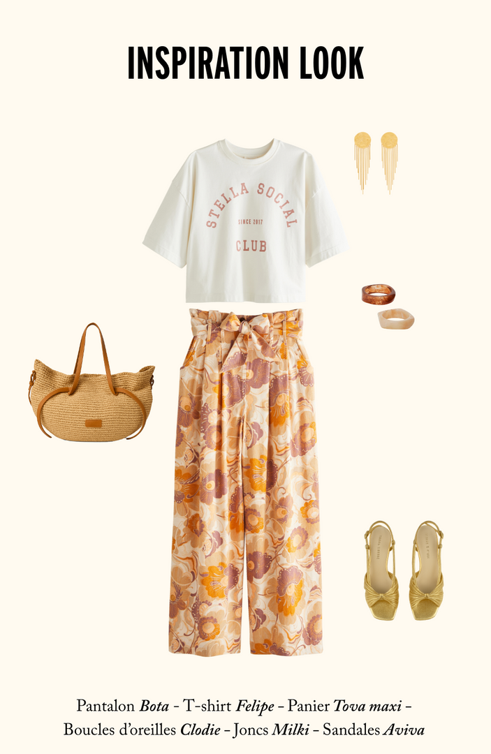 The Jonathan pants are back this season, sunnier than ever with their Bota pattern, with warm floral accents, evoking the colors of a summer sunset. Their loose, flowing cut flatters all figures, while their structured paperbag waistband, embellished with a removable belt, delicately highlights the waist. Fully lined for perfect comfort, they are crafted in a soft viscose and linen blend, ideal for warm days. Comfortable and elegant, they fasten with a discreet zip fly and pretty buttons, and feature Italian pockets.
