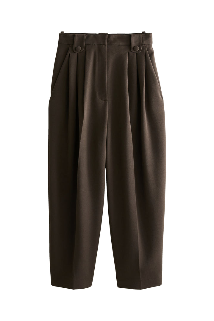 These trousers are the perfect combination of structure and refinement. The delicately designed pleats on the front and covered buttons give them a subtle elegance. Doris features a fitted cut and wide belt loops, two of which are at the front and adorned with buttons, subtly accentuating the waist. At the back, a welt faux pocket completes its balanced and original design.