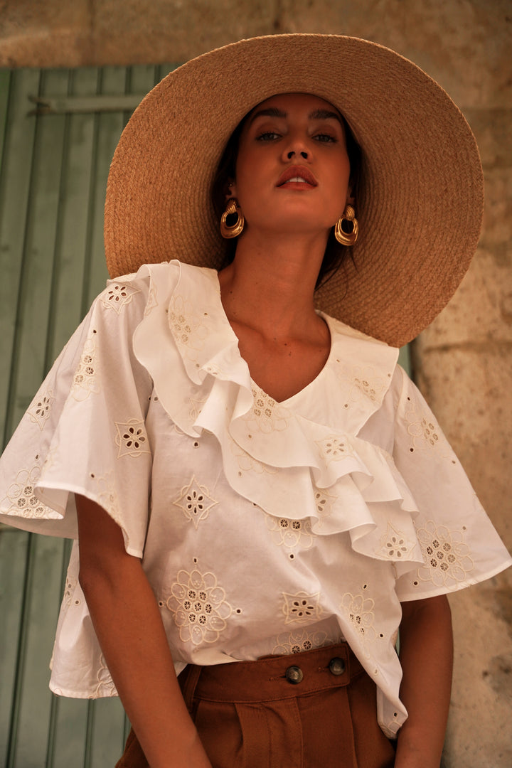 Nathaly ecru embroidered blouse