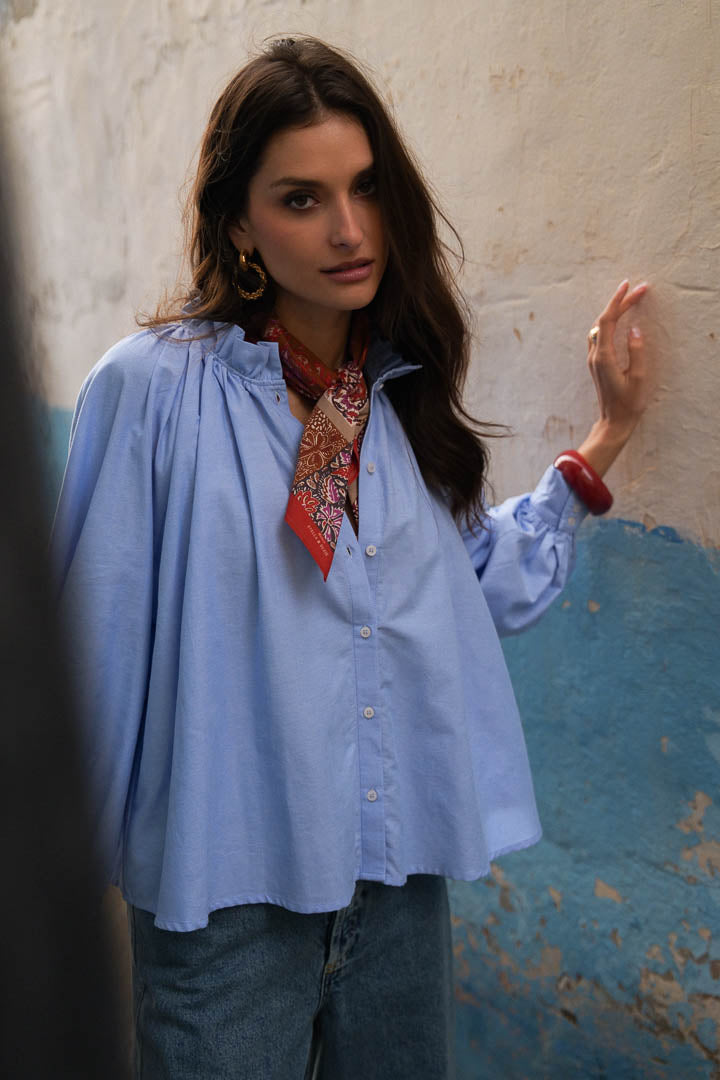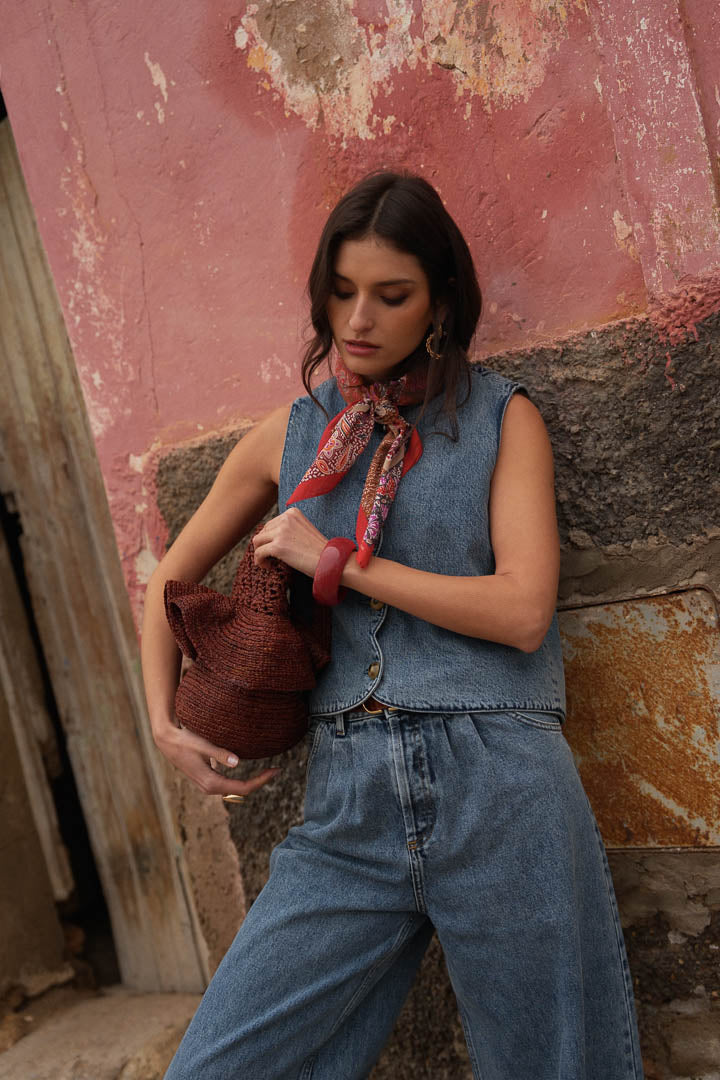 Made from 100% cotton, it has a square format of 77 x 77 cm, ideal for wearing in all ways: tied around the neck, in the hair or on a bag.