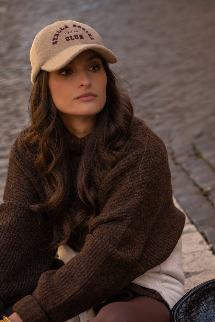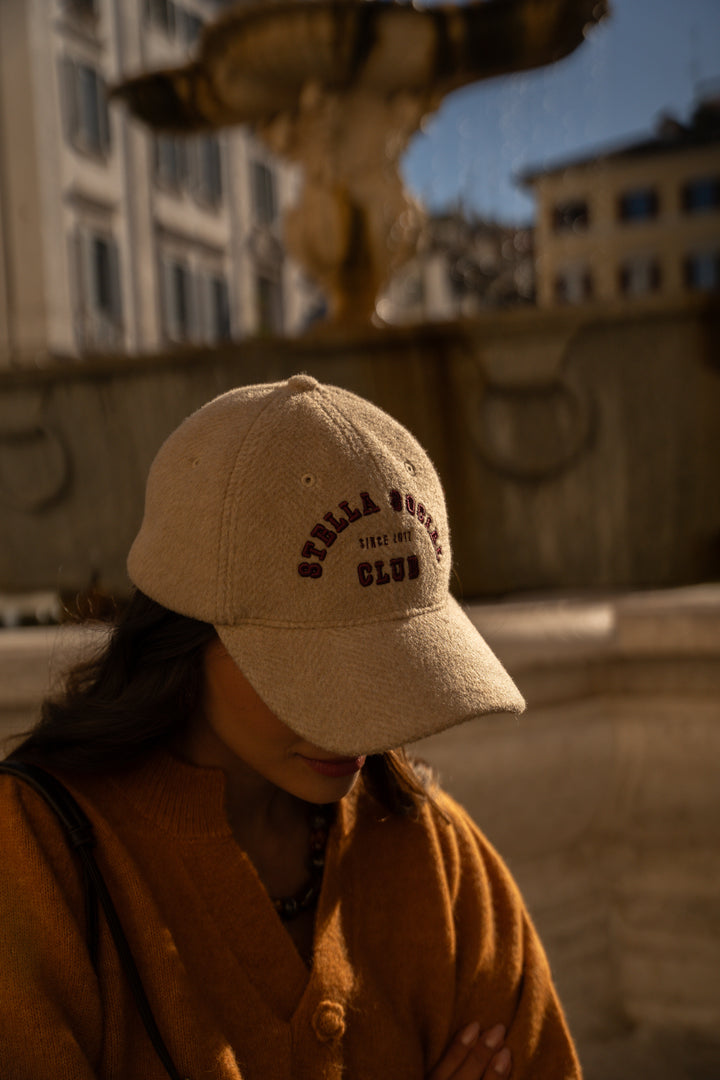 The Laurene cap, embroidered in burgundy with our iconic "Stella Social Club" logo, is the perfect piece to embrace autumn. Its wool texture makes it a fashionable accessory.