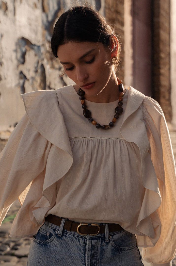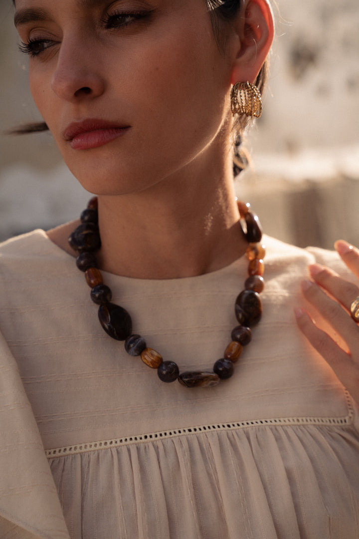 It is enhanced by a rounded clasp in gilded brass and a delicate adjustment chain, which ends with the Maison Stella & Suzie signature flower.