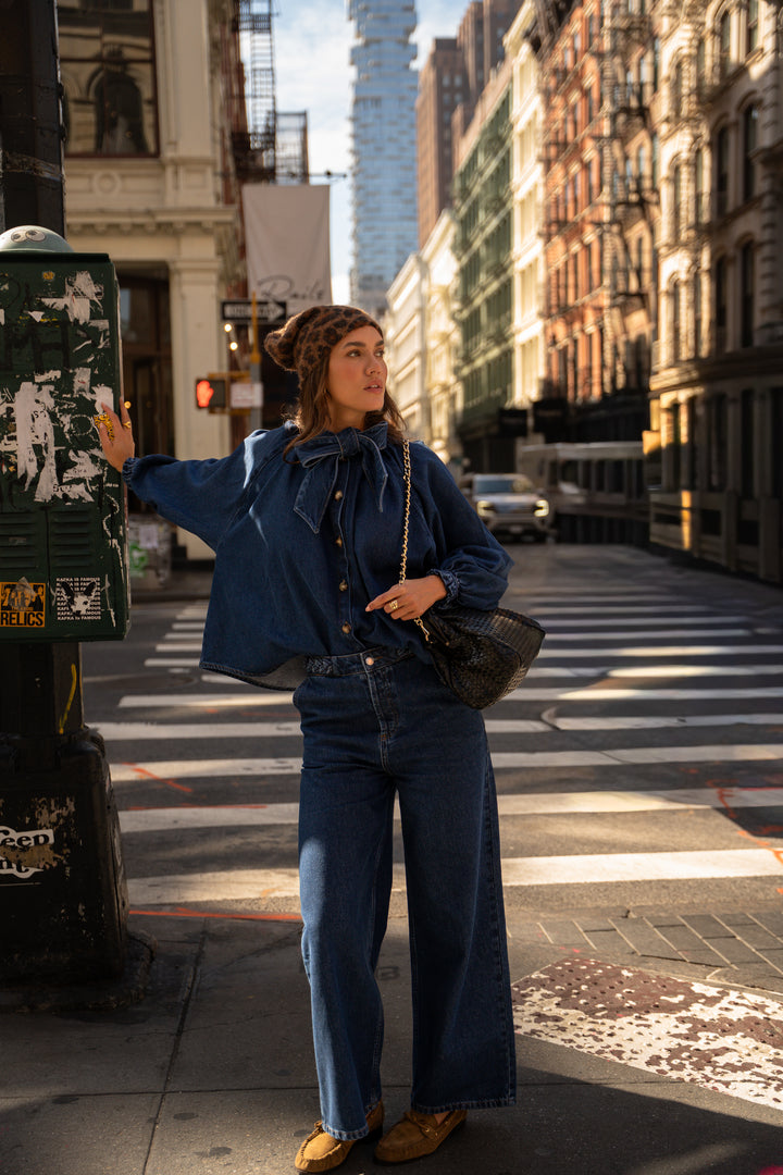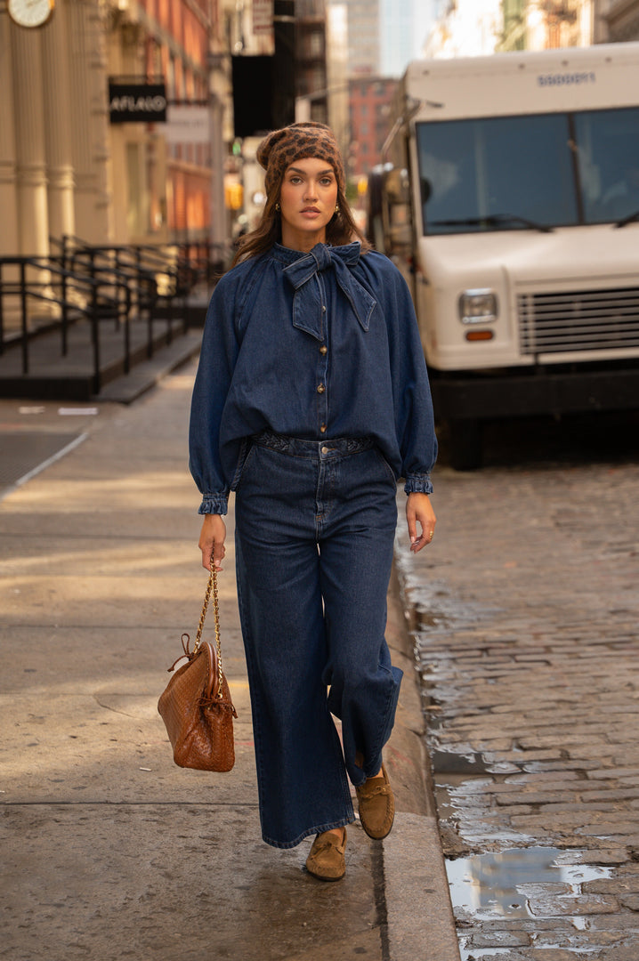 We're loving the full denim look with the Amarya shirt, and the little detail with the Leoti hat, which makes all the difference.