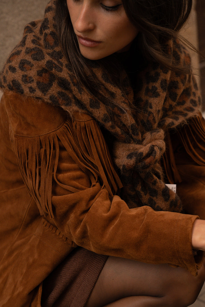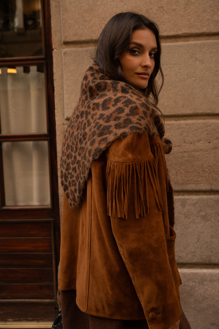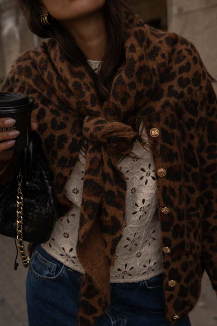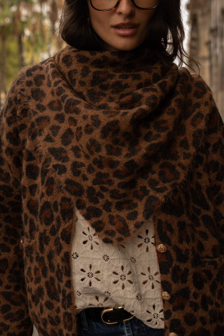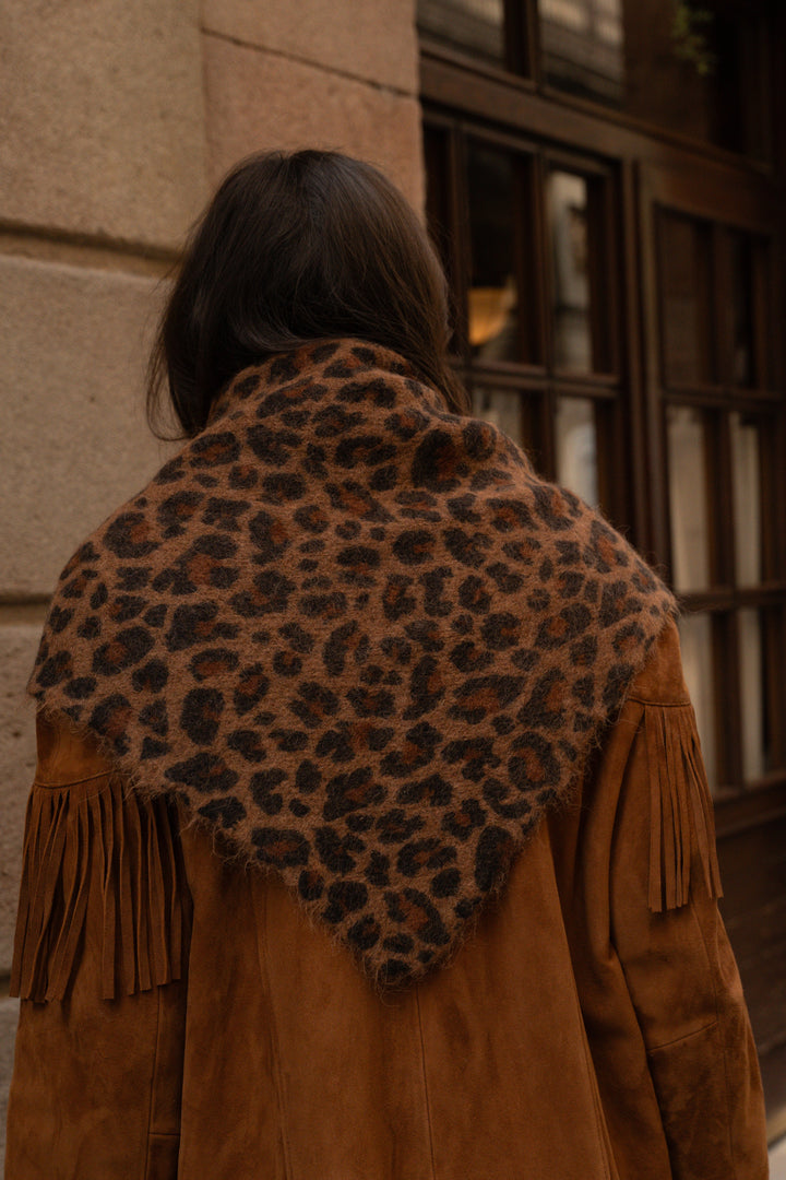 The Anastasy scarf features the iconic leopard print of the Madison in a stylish triangular version.