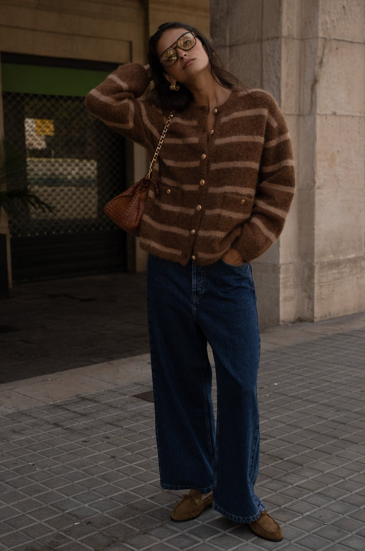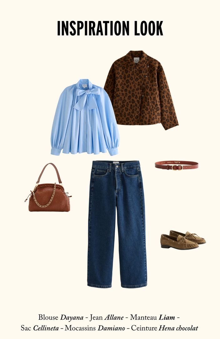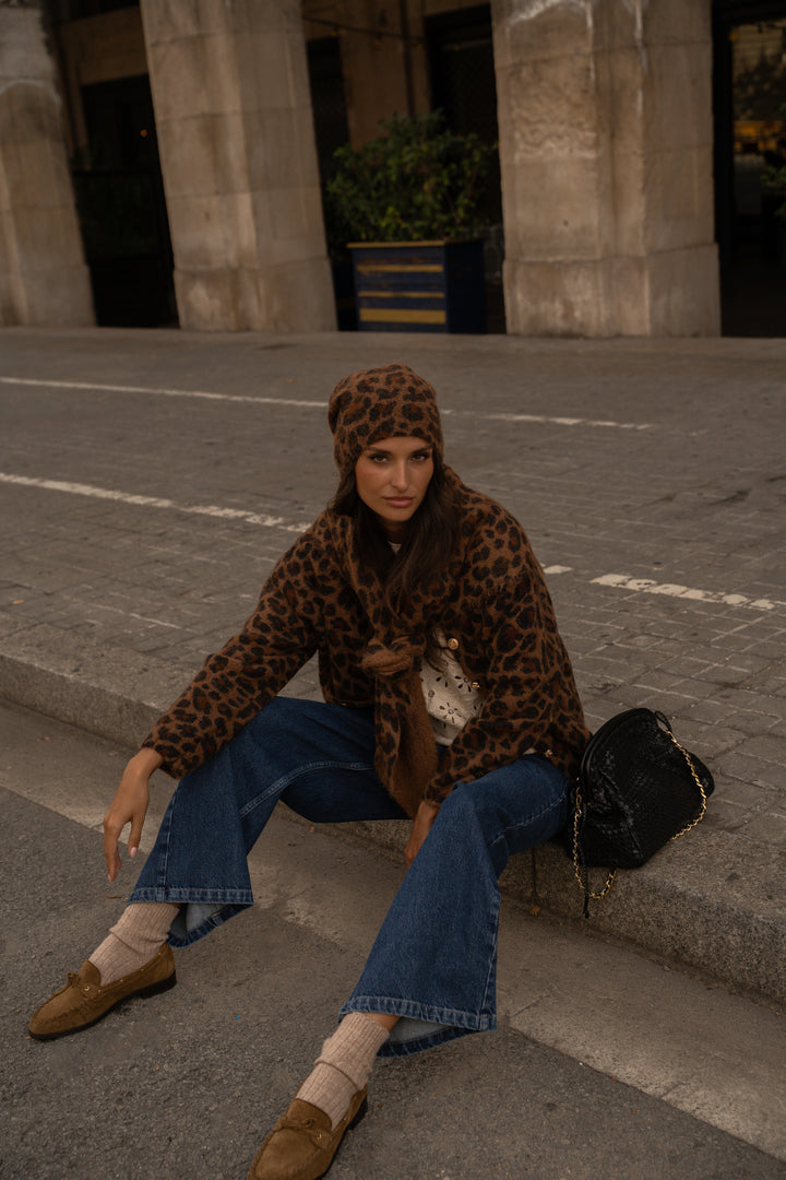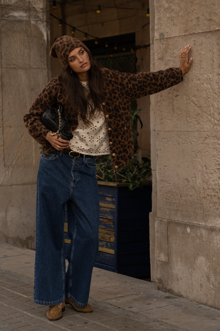 We love wearing it with an ecru blouse or a top like Gino, and especially our favorite Madison cardigans, the camel-striped one like the leopard print. These are looks we'd love to wear every day, without ever getting tired of them.