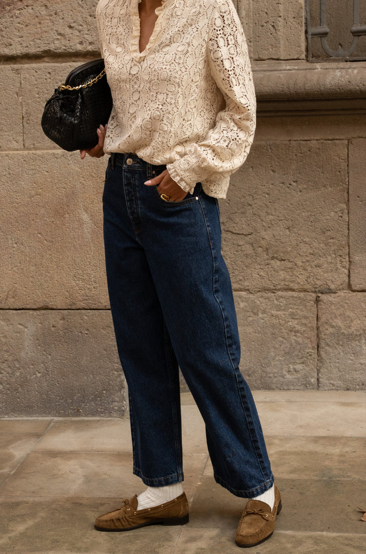 Our favorite Benji jeans are back again, this time in a slightly faded blue that will become your best ally. Whether day or night, this timeless denim will pair perfectly with a pretty blouse or a lovely knit sweater.