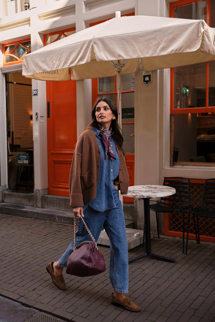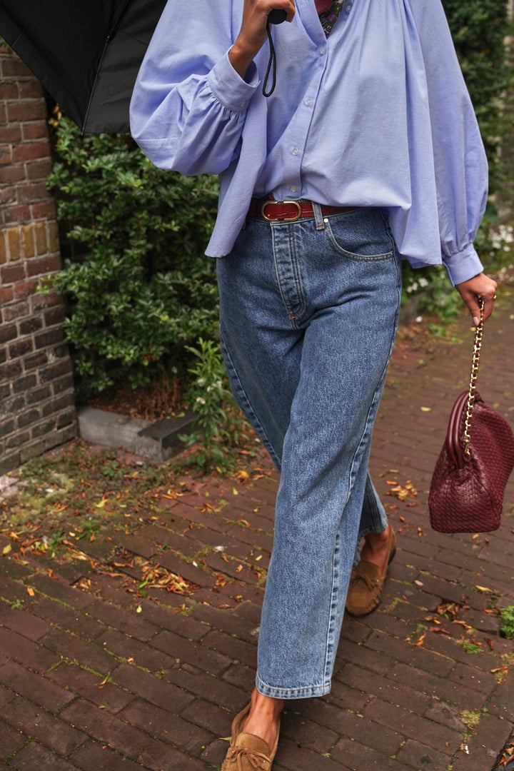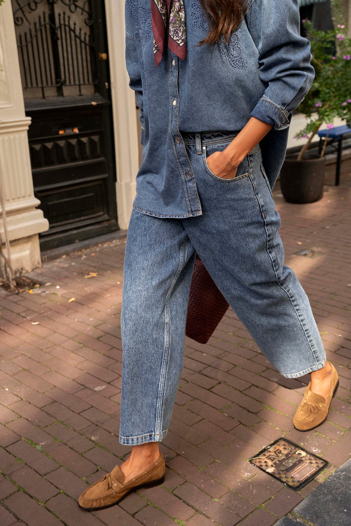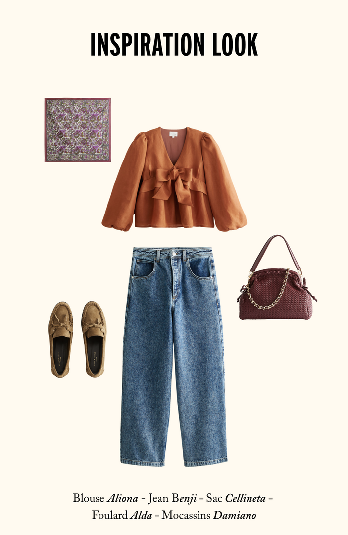 You can wear it as a total denim look with the Aldinette shirt, or opt for a pretty blouse like Divya.