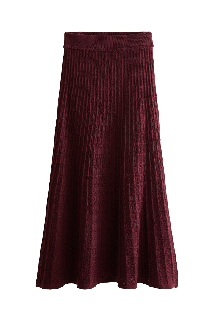 Made from a delicate pointelle knit, it features an elastic waistband accented with a refined scallop detail. Fully lined for perfect comfort, its midi length moves with you effortlessly.
