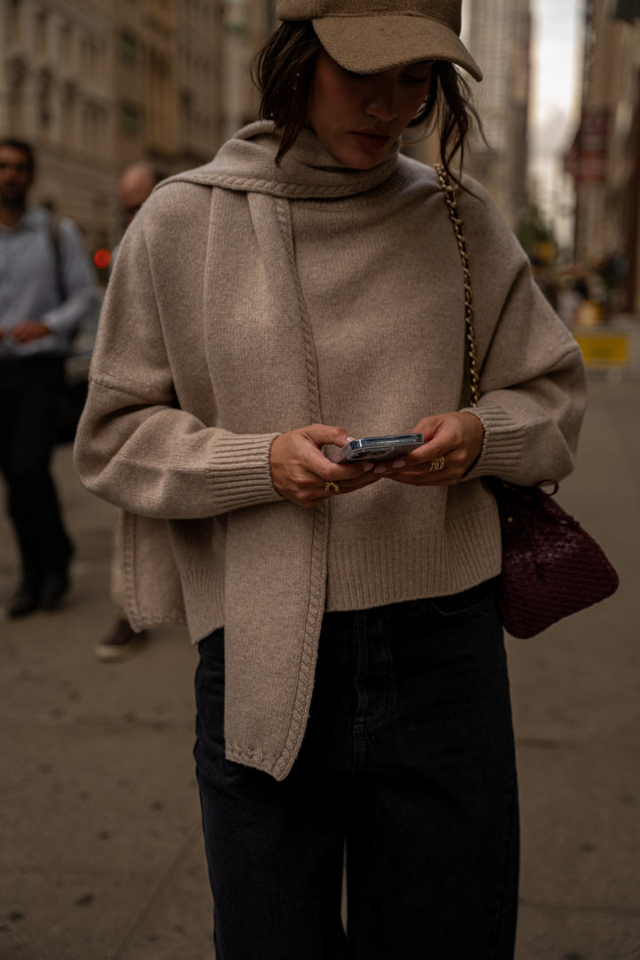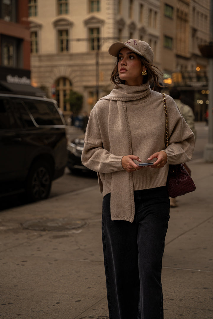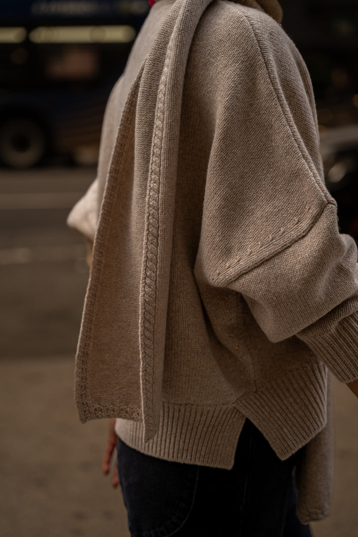 Adael heather beige scarf sweater