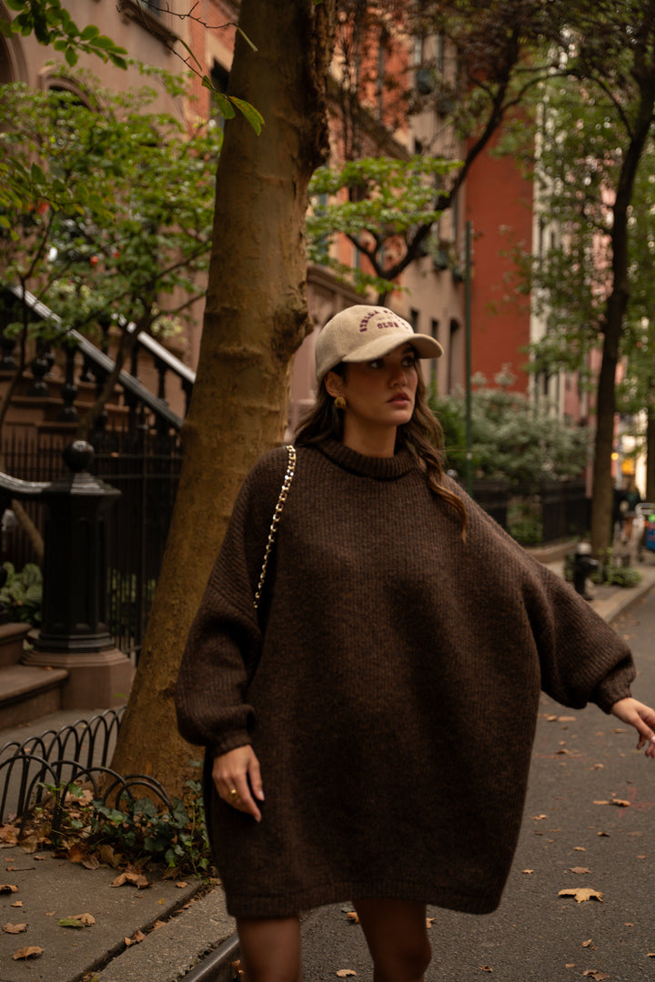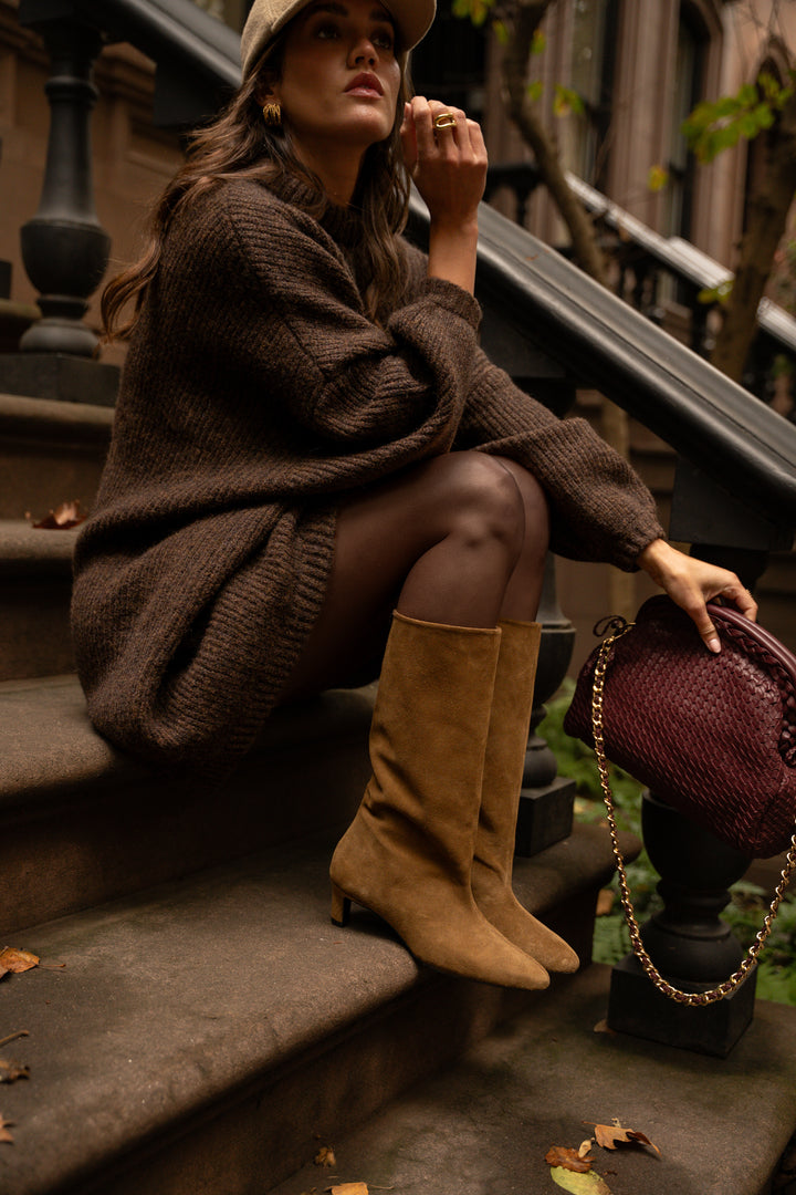 The house's new dress, Aleandra, is the knit dress you'll want to wrap yourself in all winter.
