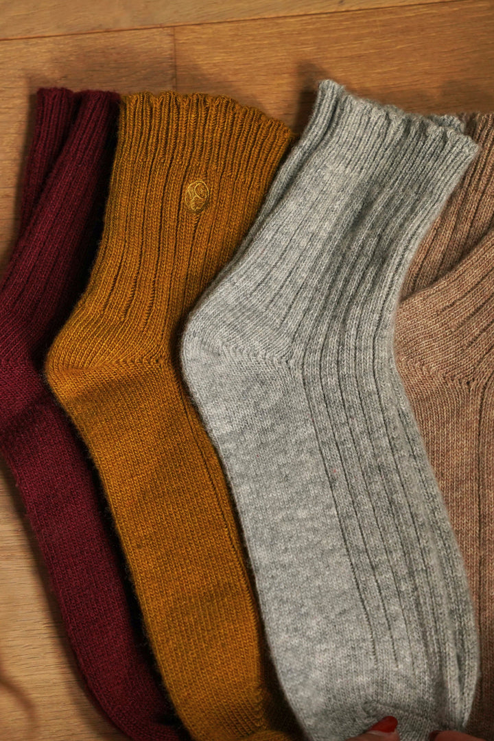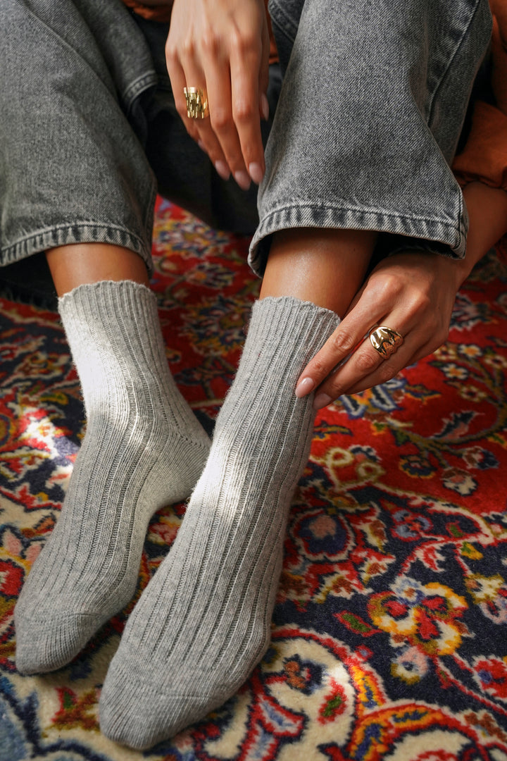 Socky socks are the perfect blend of comfort and elegance. Made from a soft ribbed knit, they feature a subtle and refined tone-on-tone embroidery of the House's iconic flower logo. Their playful finish at the top of the sock adds a delicate and feminine touch. This light grey shade is ideal for completing a casual or chic winter look, while offering absolute everyday comfort.
