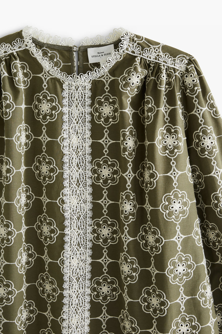 Its khaki color, delicate embroidery and flowing cut will accompany you as soon as the warmer weather arrives.