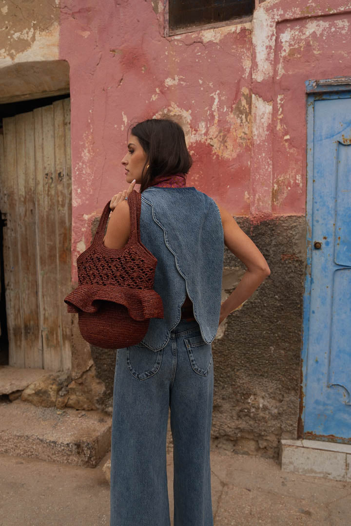Wear it alone on the skin, in a total denim look with the matching Manu jeans or layered over the blouse of your choice.