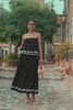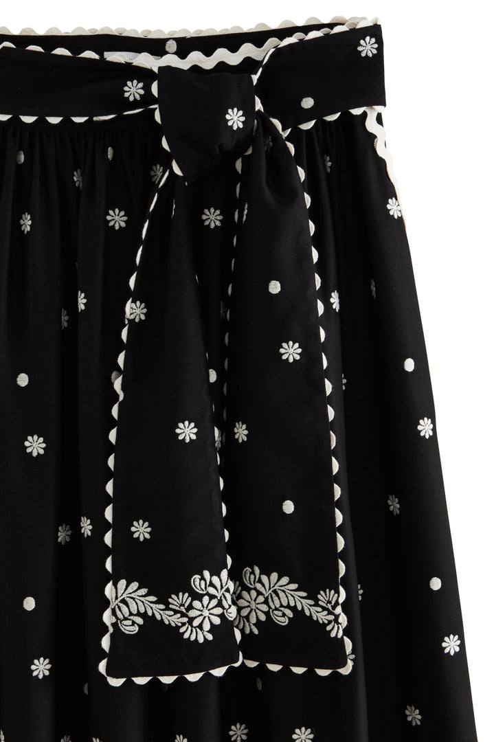 You loved it, the Bradshow skirt is back, more poetic than ever, in a deep black with delicate white embroidery.