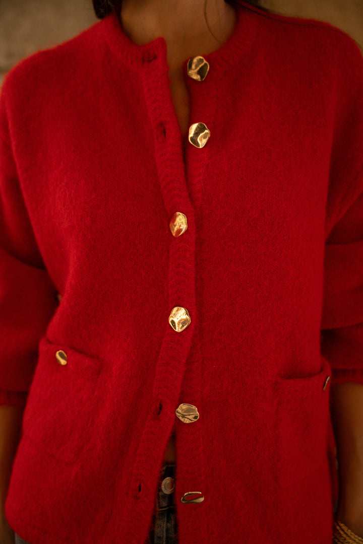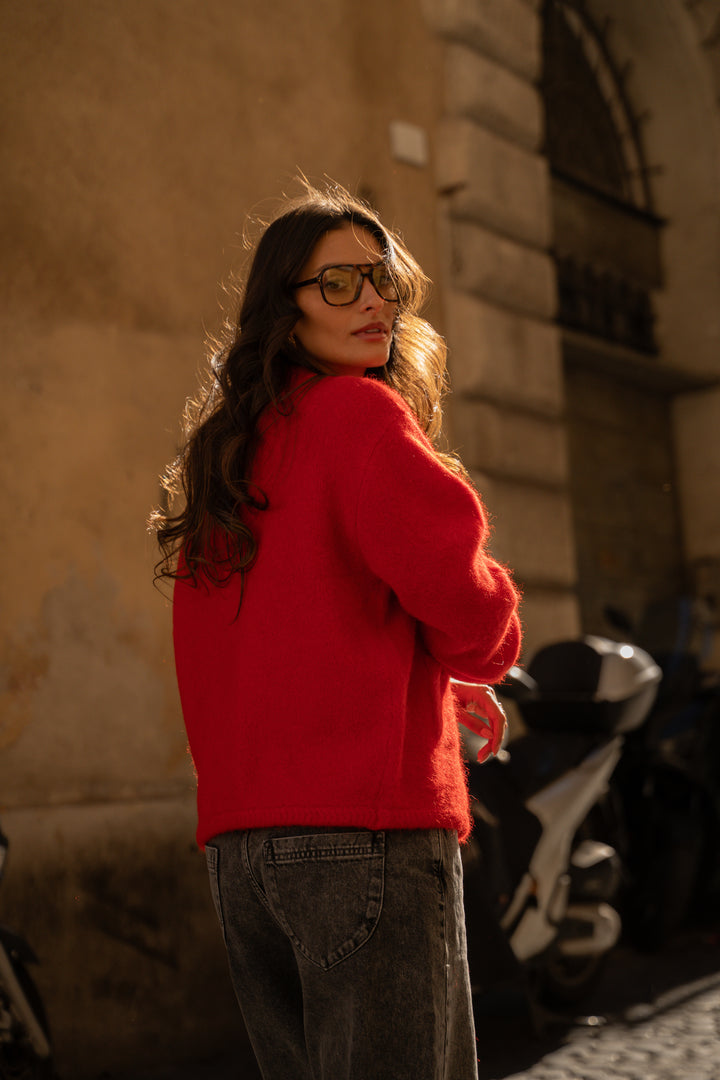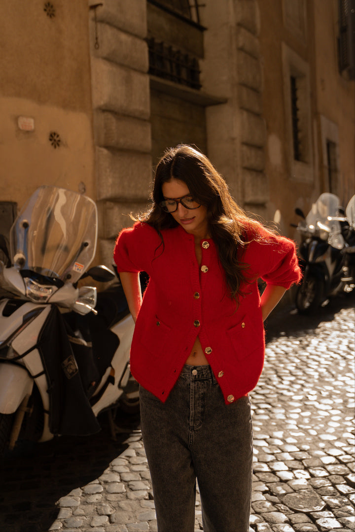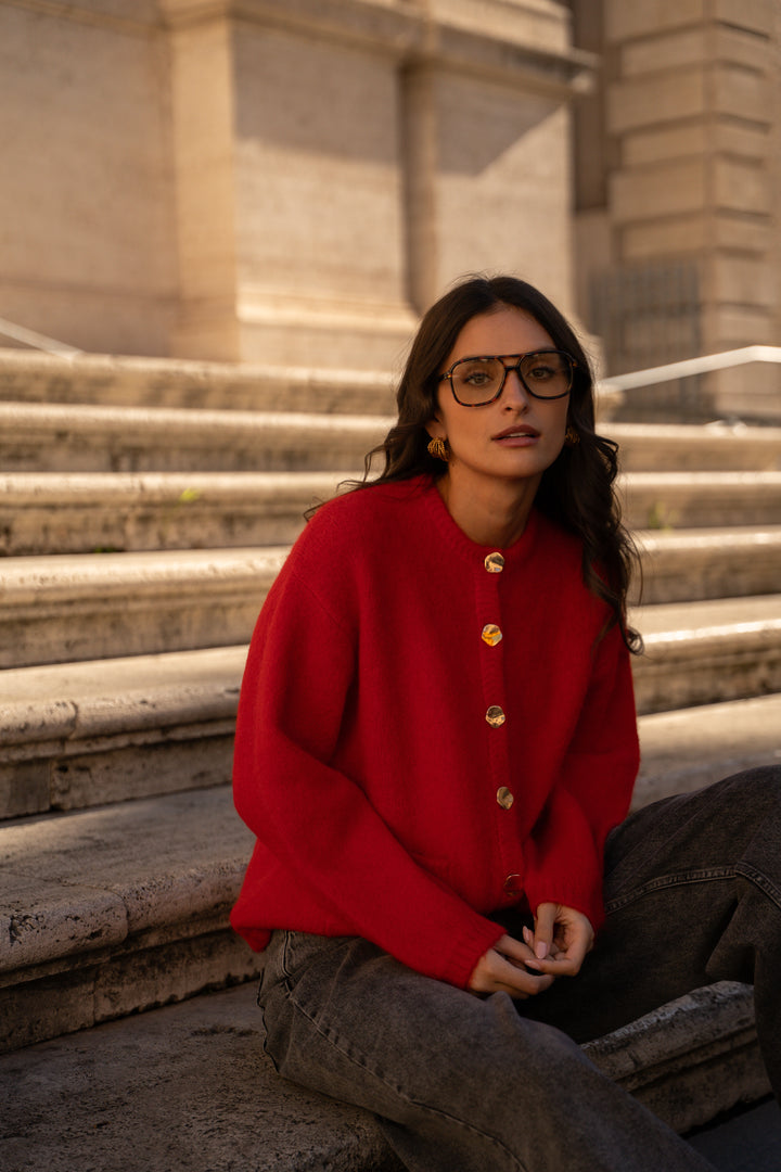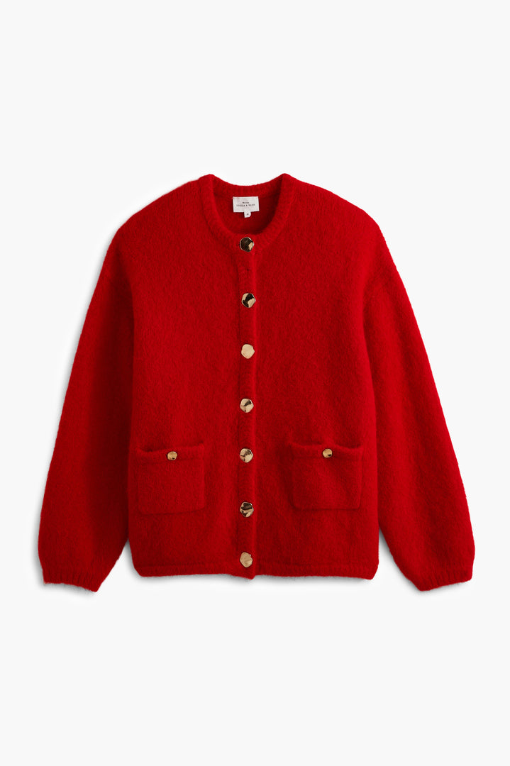 Madison is the House's iconic cardigan, thanks to its straight, subtly fitted cut that ensures a perfect drape, its softness, and its unique style. More than ever, its color makes it the key piece for the holiday season.