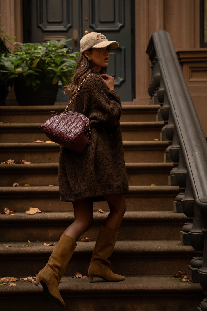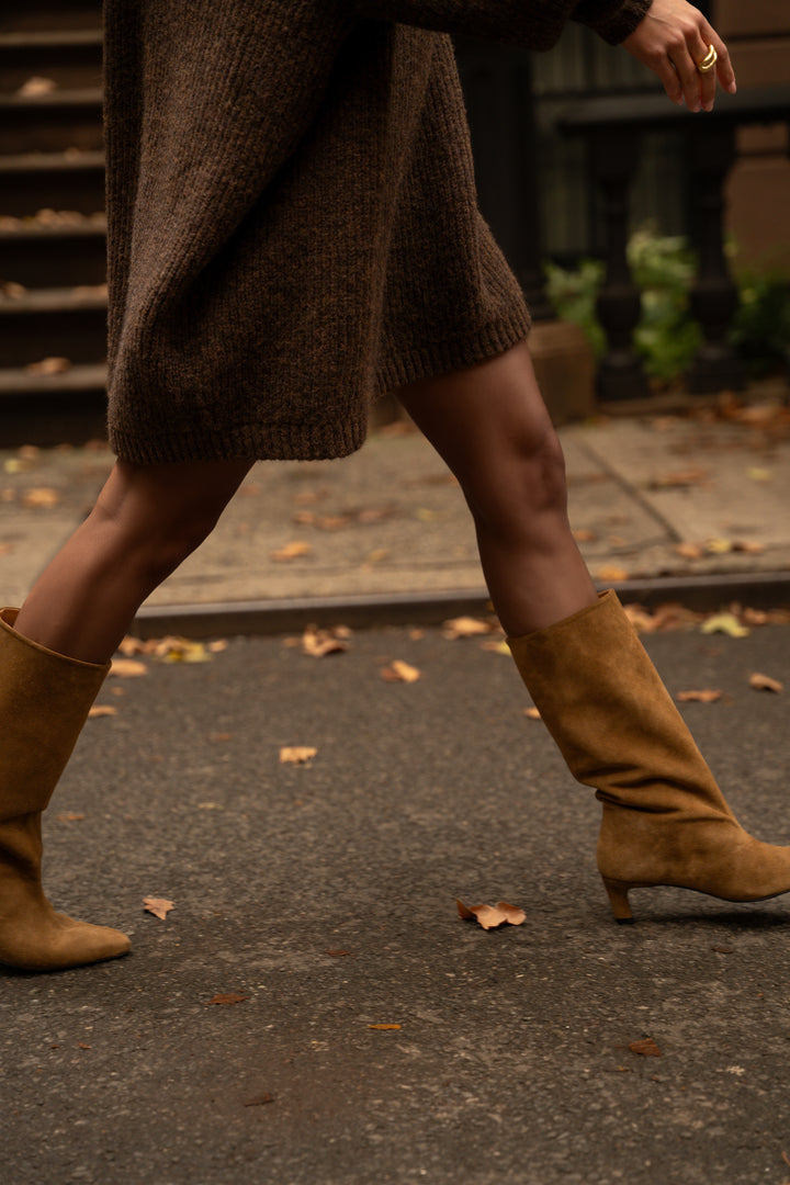 Our favorite look: the combination of these boots with the Aleandra mocha chunky knit dress.
