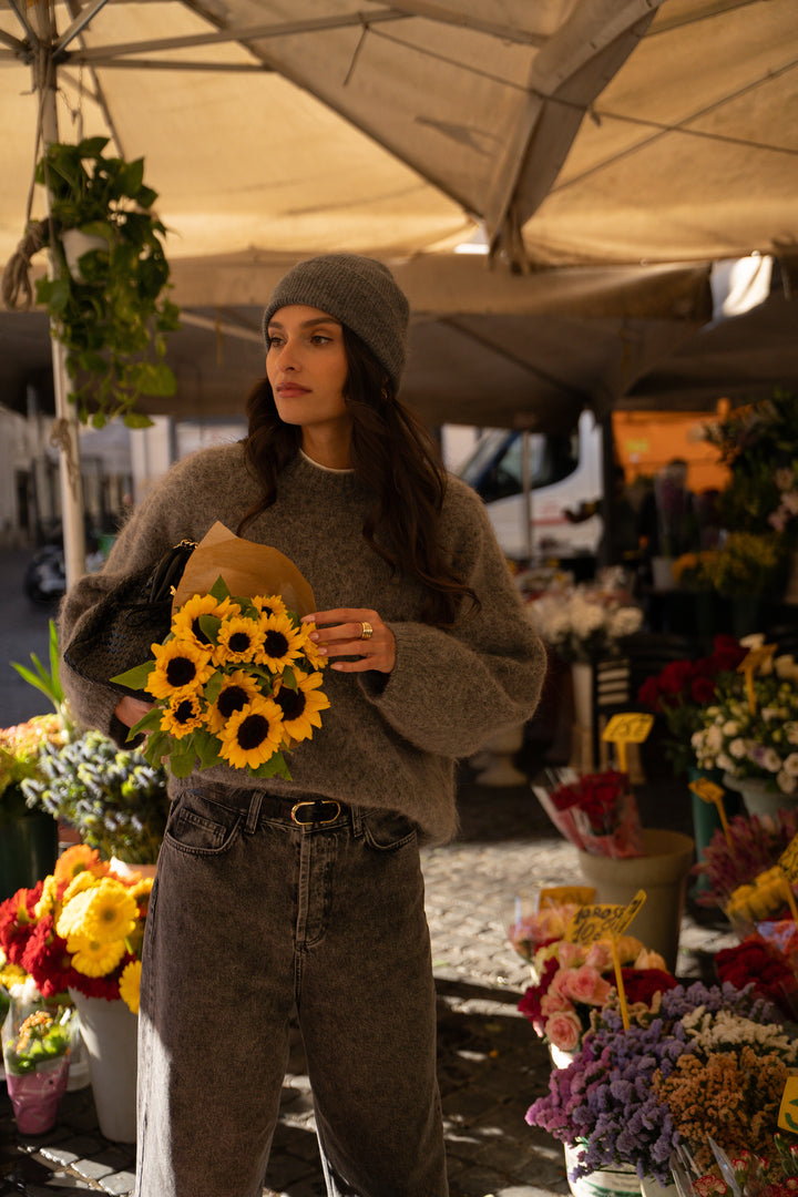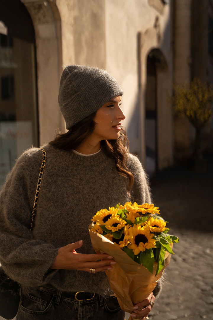 The Sarah sweater is revealed in a new dark heathered grey shade, still combining comfort, warmth and style.