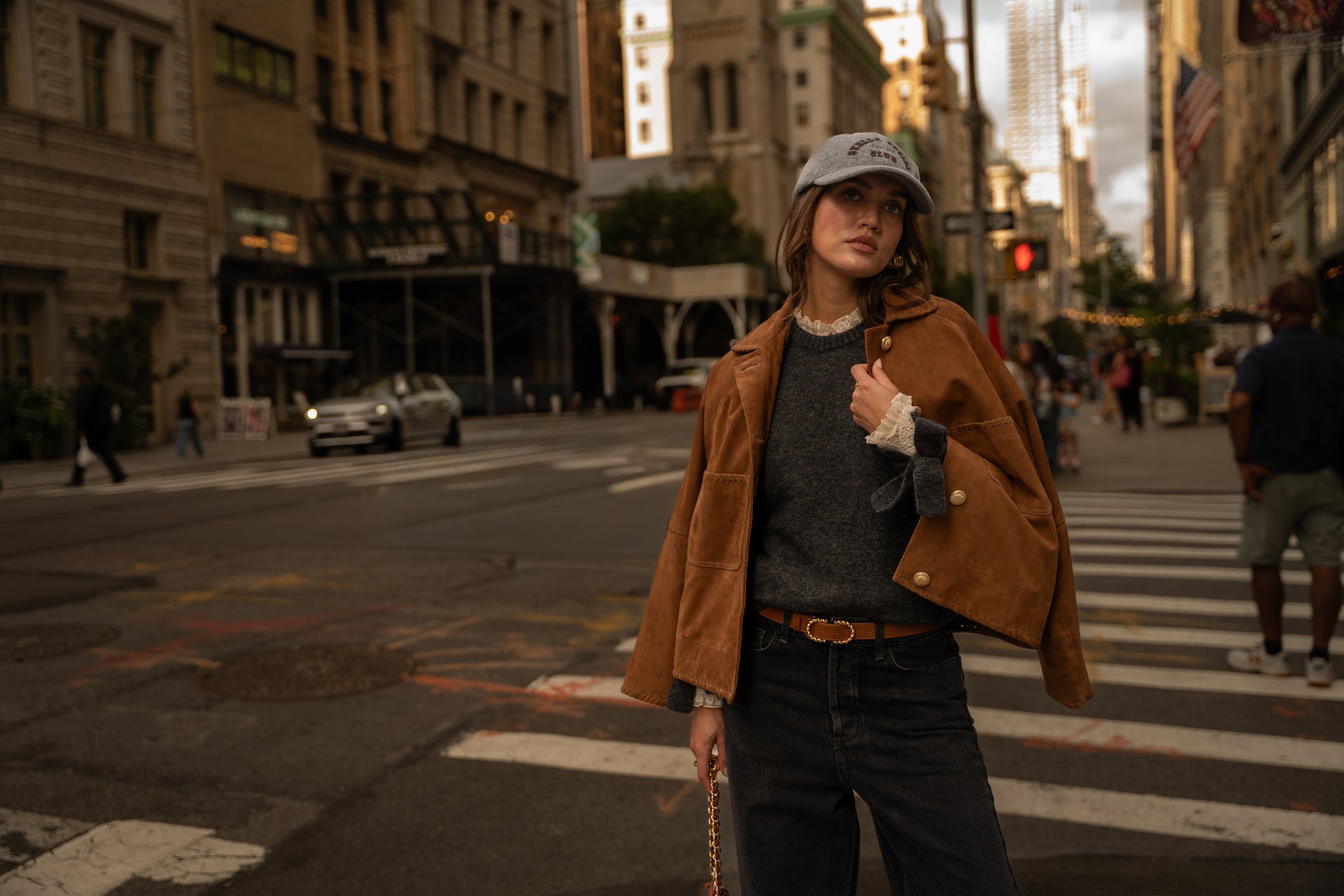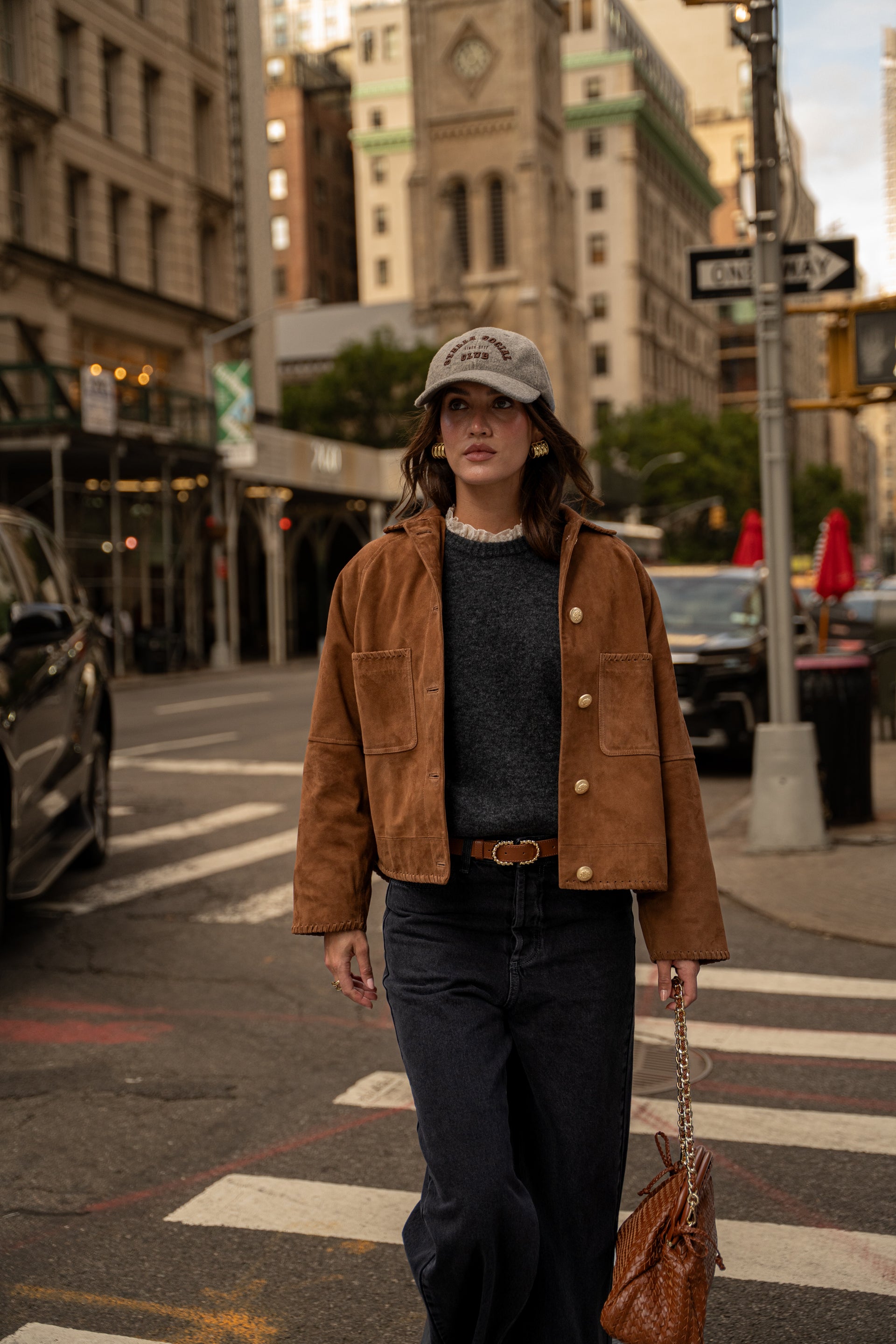 Dion scalloped camel suede jacket