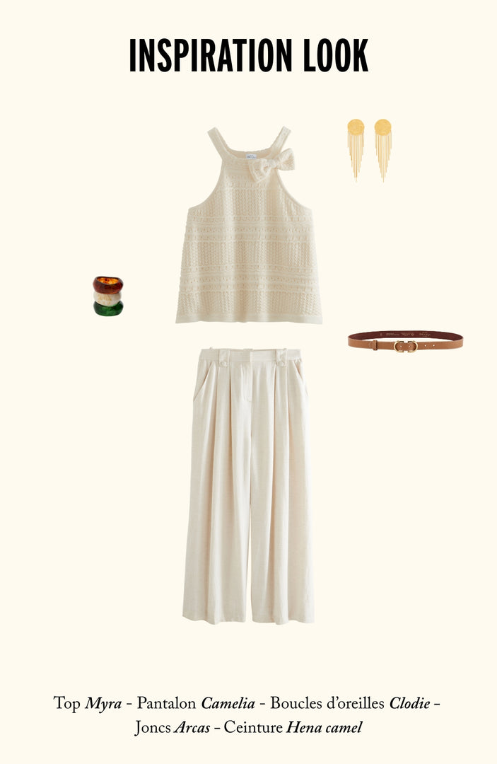 The Camélia pants come in a mottled ecru, for a chic summer look, ideal for all occasions.