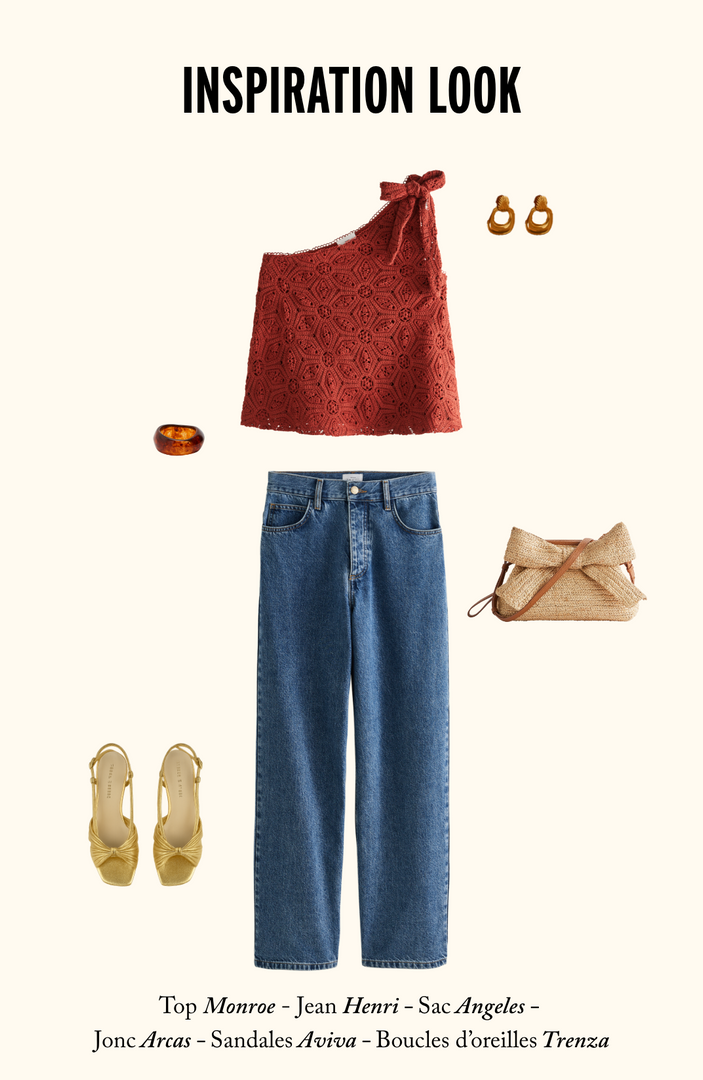 Adopt a feminine and casual style with the new jeans from Maison Henri! High-waisted, loose fit, wide legs, and indigo blue denim, it is our new essential. The stitching on these jeans is contrasting. Wear them slouched over shoes for a sleek and modern look. Pair with a beautiful belt, a top, a sweater, or a light jacket for the season. This denim goes with everything!