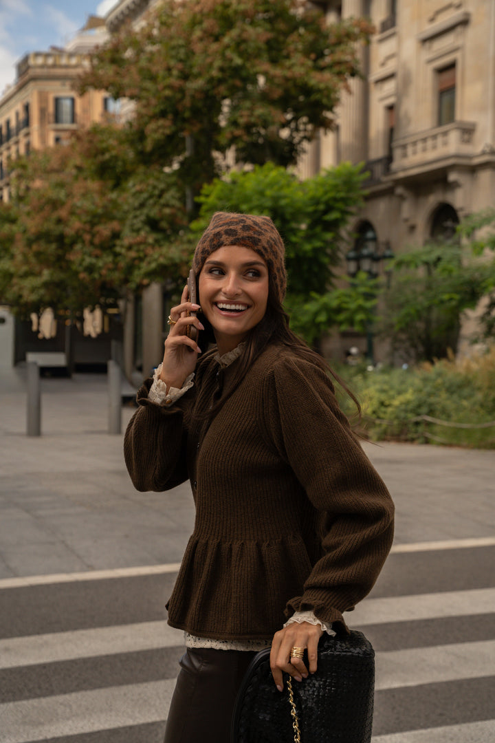 We're loving the monochrome look with our Roger brown leather pants! We're accessorizing the look with the Leoti leopard hat.