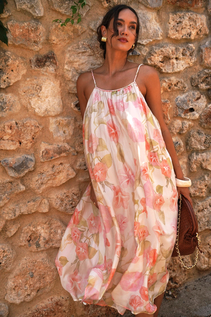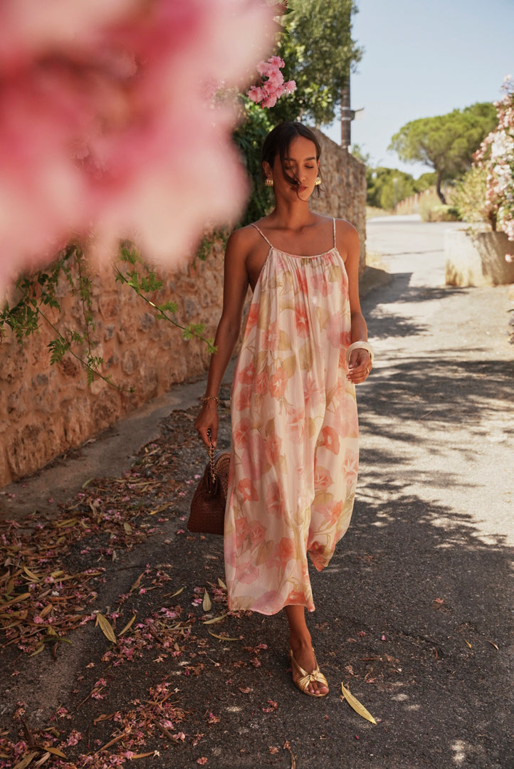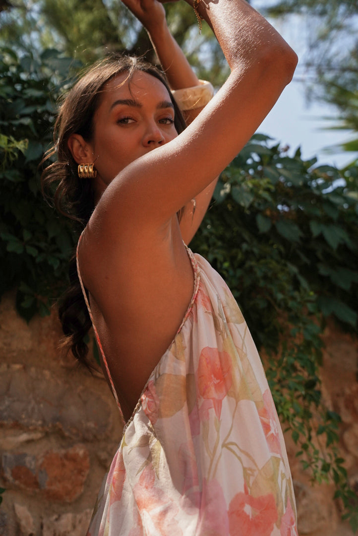 Esta temporada, Soanna se presenta en un precioso estampado de delicadas flores en tonos rosados, iluminando la silueta con sutileza.