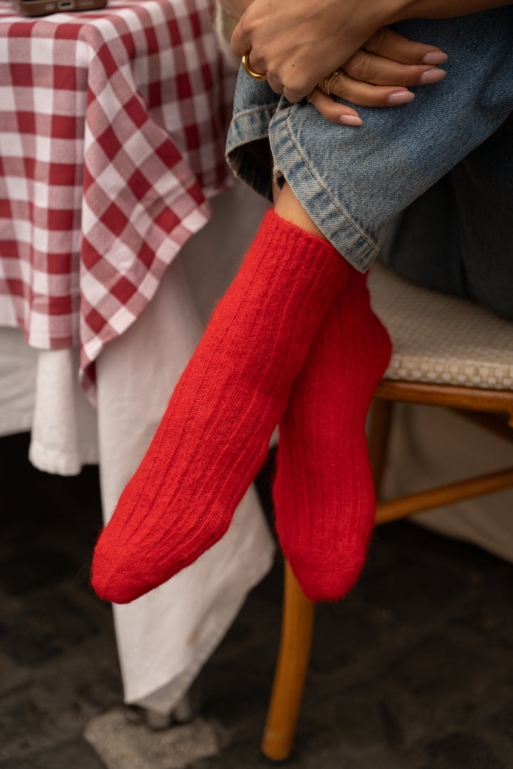 Los calcetines Socky combinan a la perfección comodidad y elegancia. Confeccionados en punto acanalado de alpaca, presentan un sutil y refinado bordado tono sobre tono del icónico logotipo floral de la Casa. Un ribete decorativo en la parte superior les aporta un toque delicado y femenino. ¡Este vibrante nuevo tono rojo añadirá un toque de estilo a tus conjuntos!