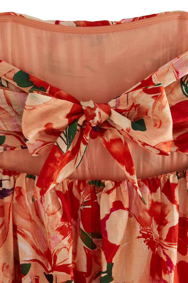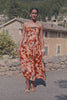 El vestido Almudena regresa con el precioso estampado Bella Donna. Este cálido estampado, en tonos naranja y rojo, que representa delicadamente hermosas y románticas flores, añade un toque de carácter y refinamiento a esta elegante pieza.