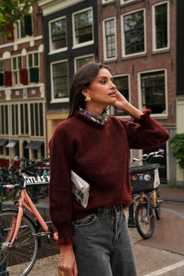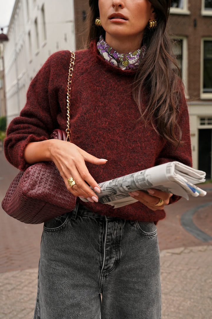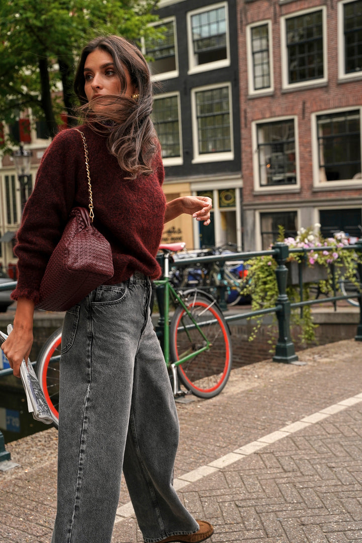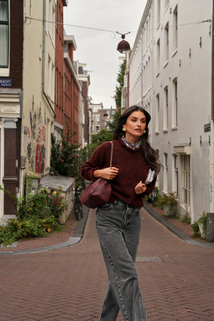 Le match parfait selon nous ? Porté avec le jean Allane gris, le sac Cellineta burgundy et le foulard Alda Amaranthe.
