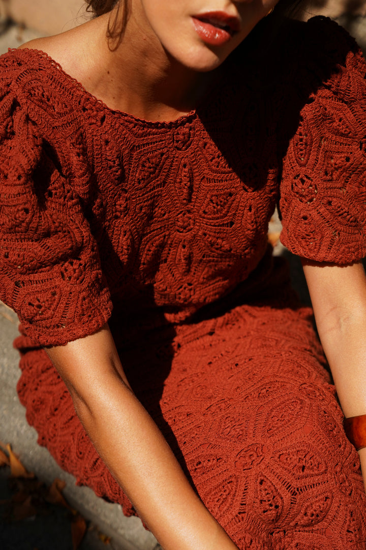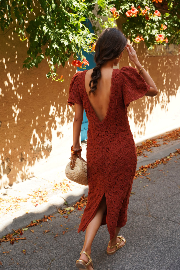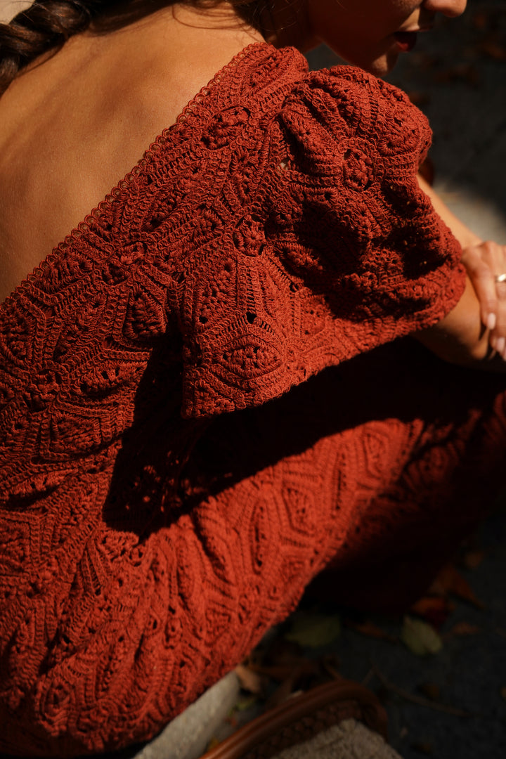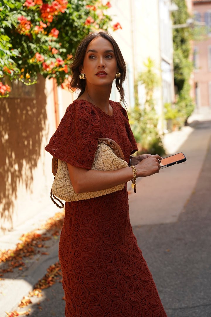 Fedolana se dévoile cette saison dans un macramé terracotta qui révèle toute son élégance.