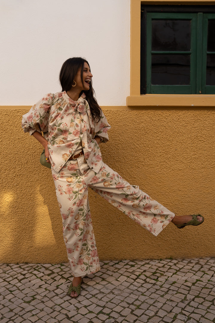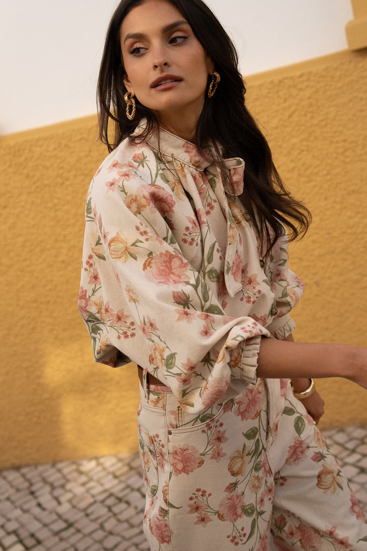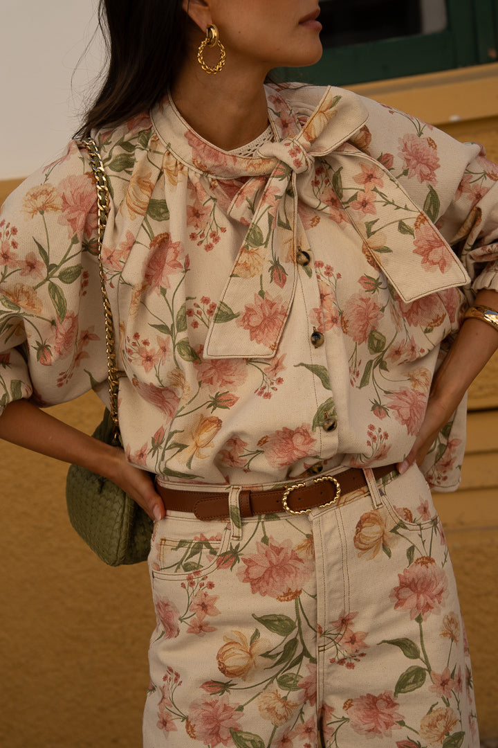 Amarya, notre chemisier en jean préféré se décline cette saison dans un imprimé floral Rosabella, qui lui apporte une douceur naturelle.