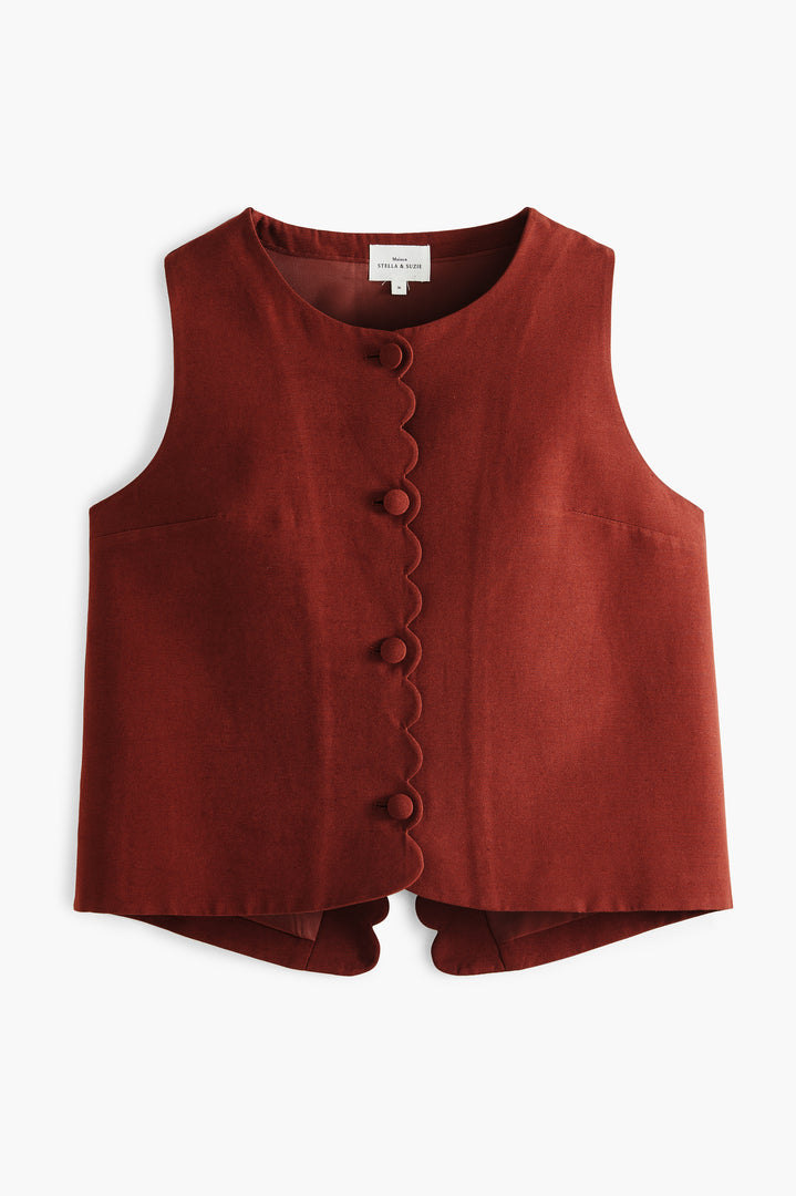 Dérivé de notre iconique Kimmy, le gilet sans manches Kimel revisite l’esprit tailoring de la Maison dans une version fluide aux détails délicats.