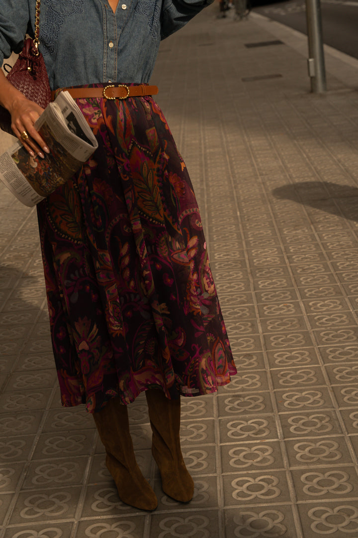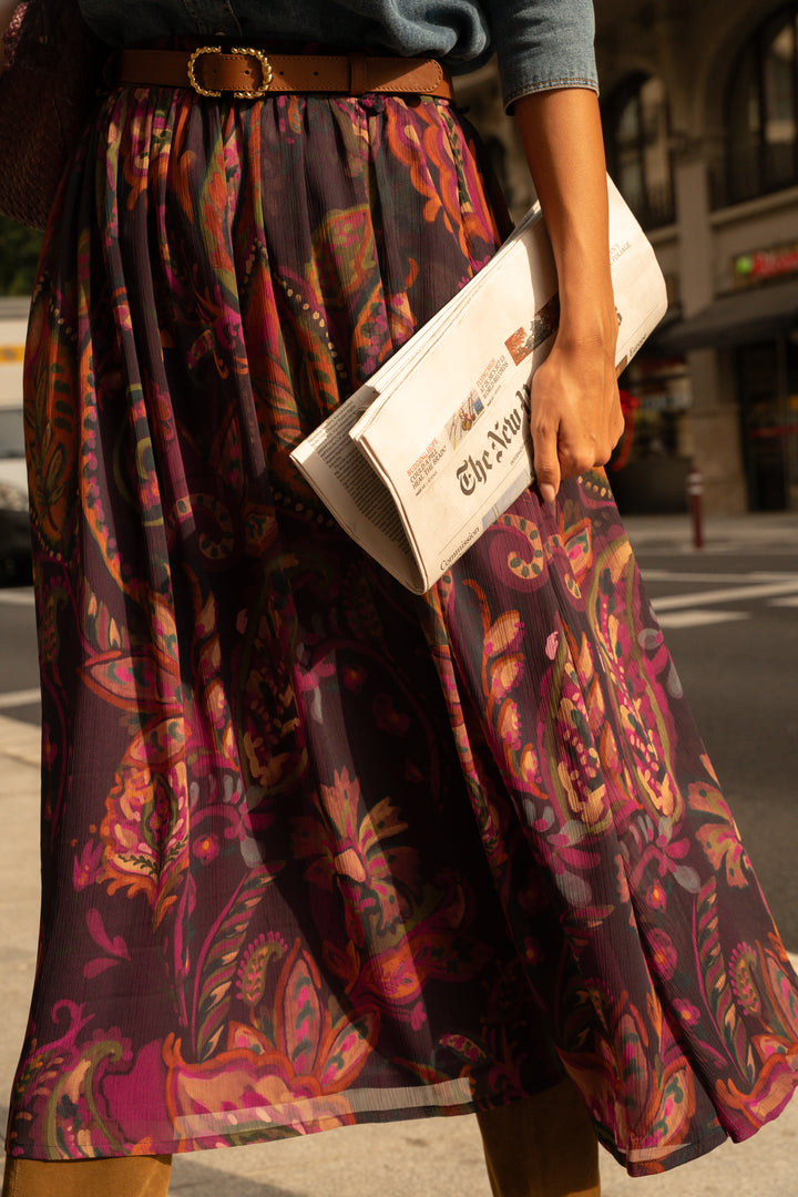 Résolument élégante, la jupe Xani imprimée dévoile une silhouette fluide.