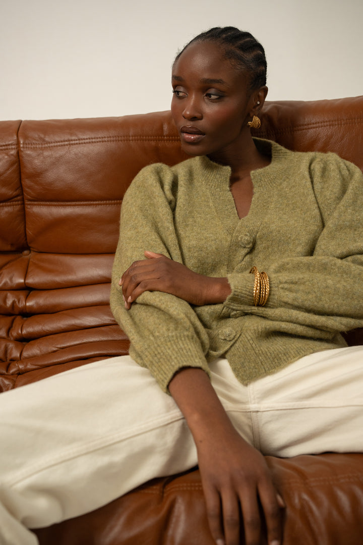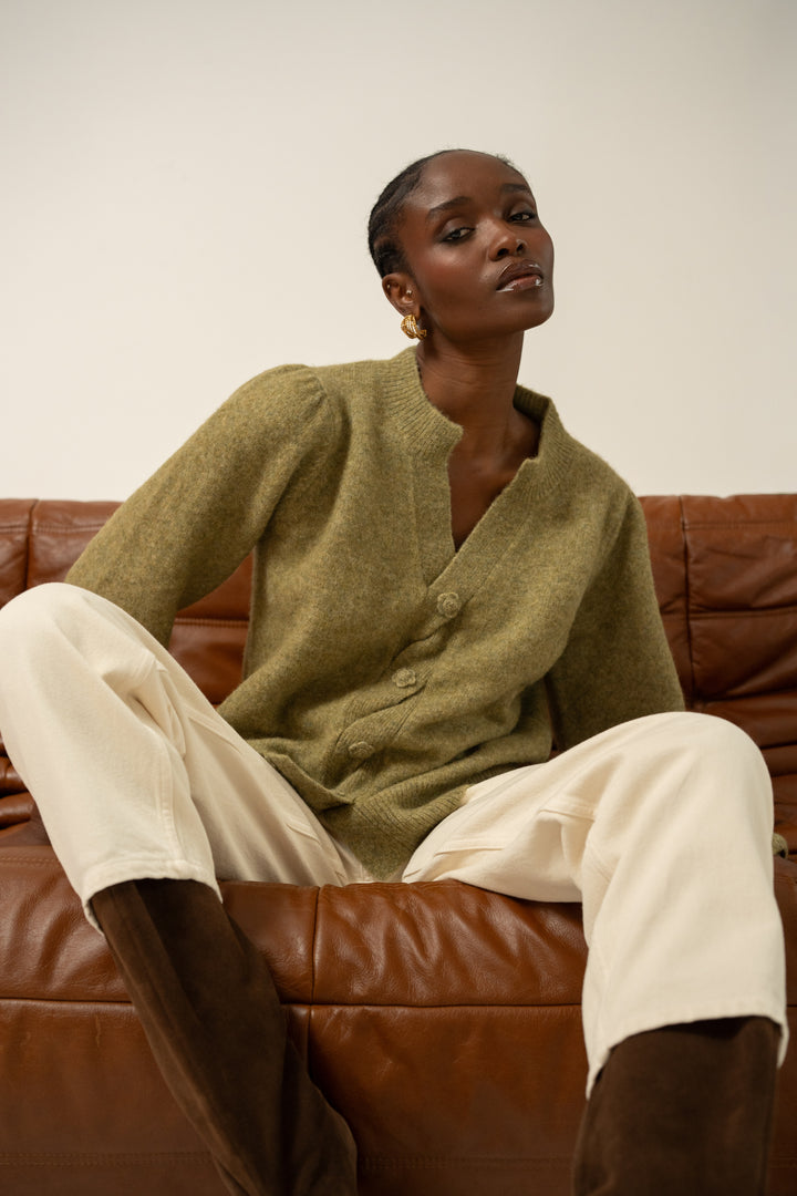 Confectionné dans une maille douce couleur olive et composé à partir d'alpaga et de laine, il enveloppera votre silhouette du réconfort nécessaire tout au long de l’hiver.