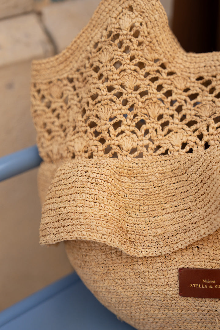 Cette pièce a été conçue avec le plus grand soin. Afin de préserver la qualité de votre sac en raphia Maison Stella & Suzie, nous vous conseillons de la tenir éloignée de toute source de chaleur, pluie ou humidité. Nous vous recommandons de ne pas y ajouter trop de poids afin qu’elle puisse garder sa forme initiale. Lorsque vous ne le portez pas, conservez-le dans sa pochette en tissu.
